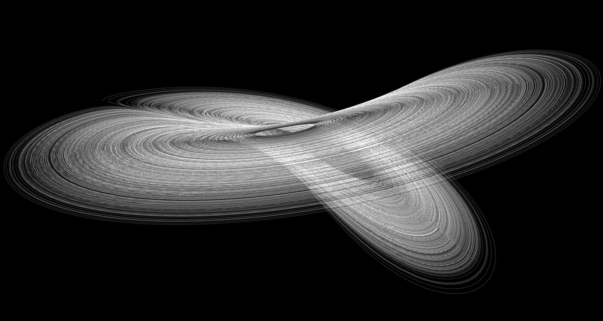 Nécessite WebGL dans votre navigateur). Vous pouvez faire tourner l’attracteur sur lui-même pour le voir sous toutes ses coutures.