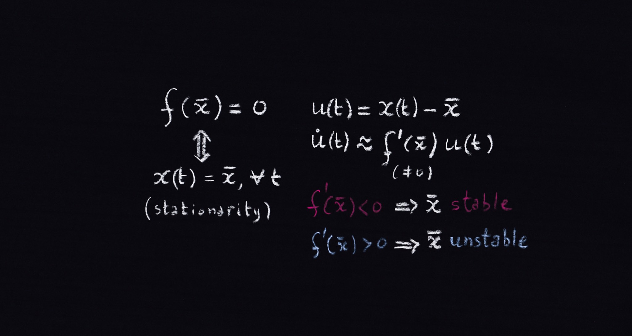 and an application of Taylor’s theorem gives$$ \dot{u}(t)=f(\bar{x})+f’(\bar{x})\thinspace u(t)+\frac{f’(\xi)}{2}\thinspace (u(t))^2 $$