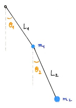 The idealized planar pendulum was studied at the beginning of this ebook. The planar double pendulum consists of two coupled pendula, i.e., two point masses $m_1$ and $m_2$ attached to massless rigid rods of fixed lengths $L_1$ and $L_2$ moving in a constant gravitational field. We neglect all frictional effects.