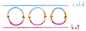 Les modèles physiques sensibles de la convection atmosphérique impliquent des équations différentielles partielles, et sont extrêmement compliqués à analyser. Lorenz a cherché un système beaucoup plus simple. Il a considéré une cellule fluide bidimensionnelle qui était chauffée par le bas et refroidie par le haut. Dans les modes de Fourier, le mouvement du fluide peut être décrit par un système d’équations différentielles impliquant un nombre infini de variables. Lorenz a fait une énorme simplification en ne gardant que trois variables !