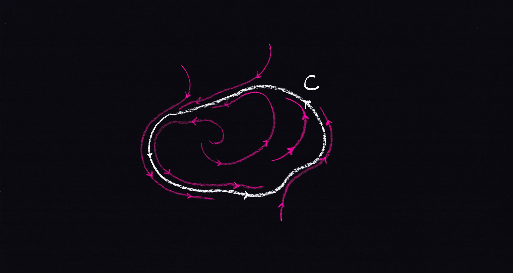 Desde un punto de vista intuitivo, el teorema de Poincaré-Bendixson es un resultado bastante plausible. En efecto, toda solución que comienza en $R$ permanece allí para siempre, y no puede aproximarse a un punto fijo. No puede tender al infinito ya que $R$ está acotado, por suposición. Ahora, elija un punto $(x_0,y_0)$ dentro de $R$ y ejecute la solución correspondiente. Si en algún momento $t>0$ tenemos $(x(t),y(t))=(x_0,y_0)$, entonces esto significa que tenemos una solución periódica. Si no existe tal tiempo, hay dos escenarios ya que una trayectoria no puede auto-intersecarse. O bien la solución acaba girando, digamos, en el sentido de las agujas del reloj, o bien tiene que dar un número infinito de vueltas para cambiar el sentido en el que gira. En el primer caso, tiene que ‘apilarse’ en una trayectoria cerrada. En el segundo caso, como la trayectoria no puede cruzarse a sí misma, esto implica que los giros se hacen cada vez más bruscos; a la larga, esto contradice la diferenciabilidad del campo vectorial. Sin embargo, una demostración rigurosa del teorema de Poincaré-Bendixson es bastante larga y requiere toda la fuerza de un teorema de topología de apariencia inocente, a saber, el teorema de la curva de Jordan.